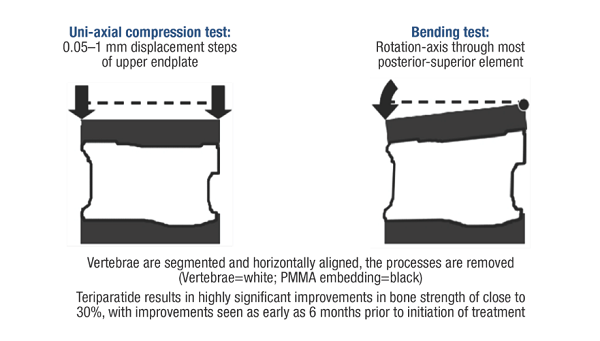 目的是了解TPTD與ALN的不同作用機制,如何影響骨質疏鬆症患者椎體的生物力學特性。