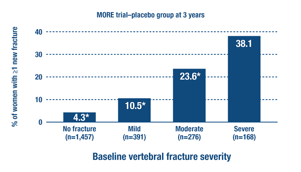 然而,基線(初始)骨折的嚴重程度也很重要,正如Raloxifen的MORE trail多重結果的分析所示,該試驗是在7705名患有骨質疏鬆症(低BMD或普遍椎骨骨折)的絕經後婦女中進行的(Delmas P 2003)。