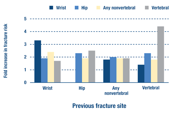 由於初始骨折後骨折明顯增加,先前的骨折已被列為評估骨質疏鬆症患者指南的風險因素之一(NICE 2011)。