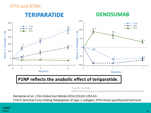 Forteo®在治療期間,iPTH是下降的。Prolia®相反,iPTH是上升的。