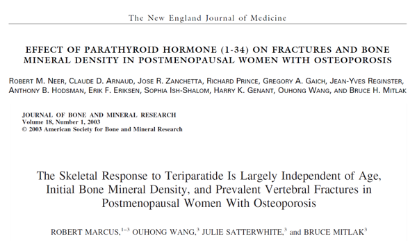 這是 2001 NEJM 發表的研究,內容是關於 Teriparatide  用於停經婦女的結果。