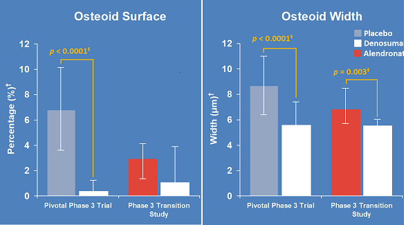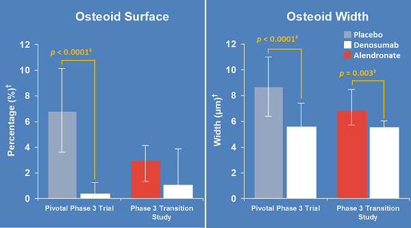 與安慰劑相比,DMab顯著降低了類骨質表面(osteoid surface)和骨樣寬度(osteoid width)。