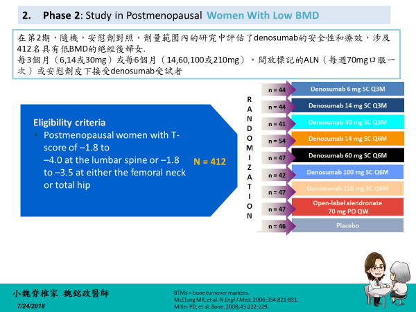Phase 1/2 的臨床研究,主要重點是放在治療劑量、安全性以及對BMD、BTM的影響。沒有骨折率的臨床資料。
